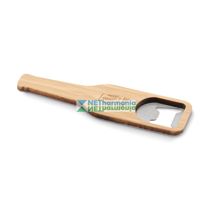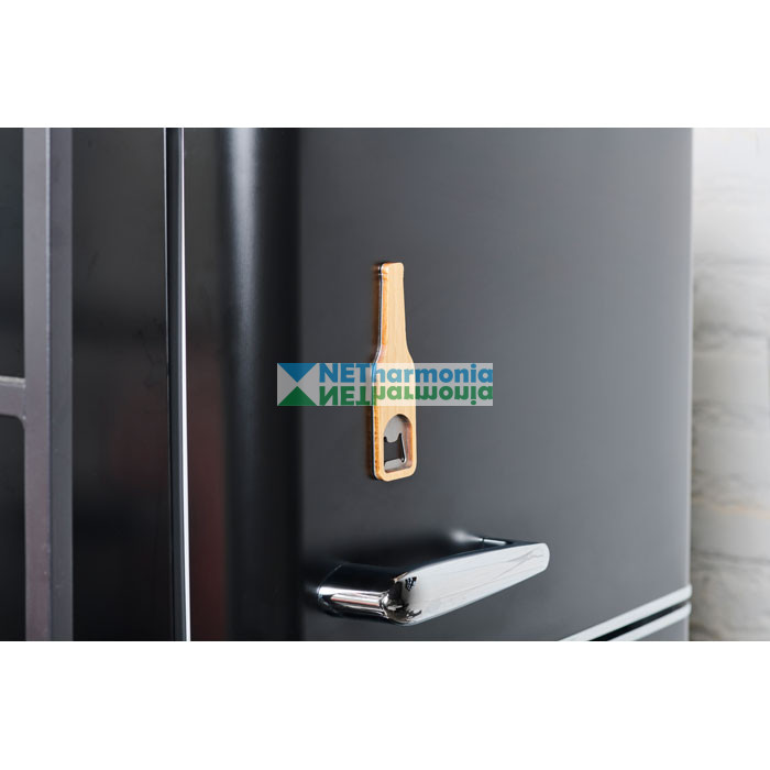 Mágneses üvegnyitó rozsdamentes acélból, bambusz felülettel.