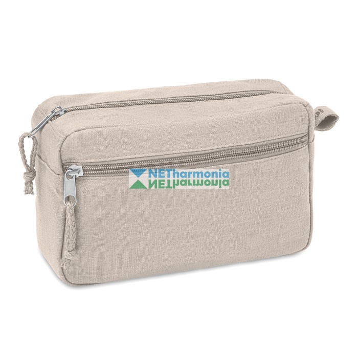 Cipzáras kozmetikai táska, cipzárral záródó zsebbel. 200 g. vastag, 100% kenderszövet anyagból.