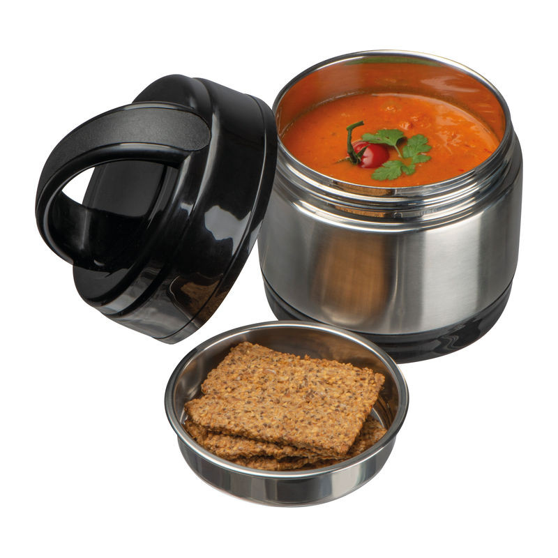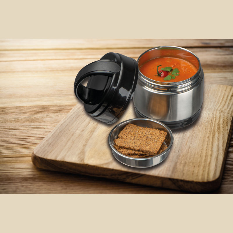 Rozsdamentes acélból készült hőszigetelt uzsonnás doboz, 1000 ml űrtartalmú tároló rekesszel.