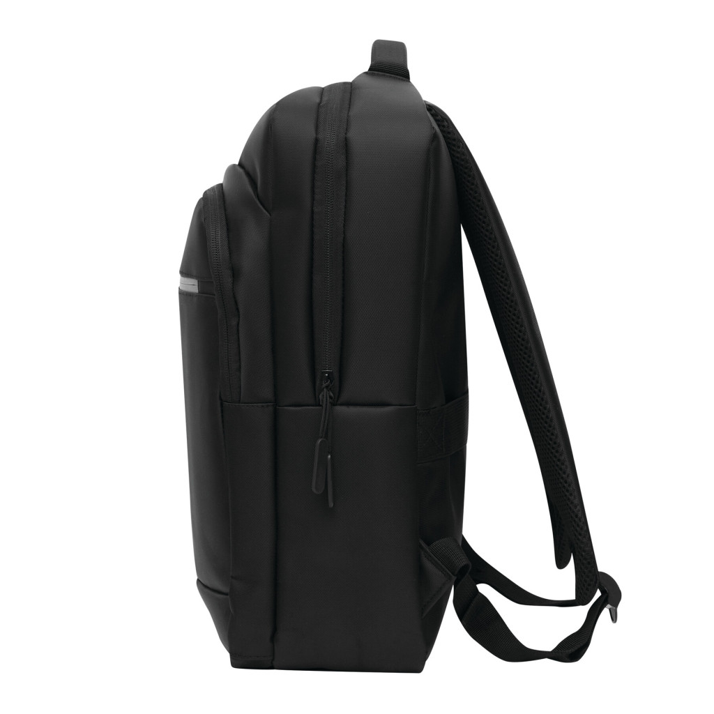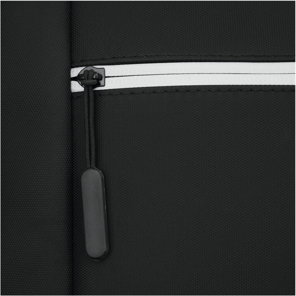 PRINCETON hátizsák: 1 cipzáras első rekesz rendszerezővel (2 becsúsztatható zseb és 2 tolltartó), 1 elülső zseb fényvisszaverő csíkkal, 1 becsúsztatható zseb az oldalán, 1 cipzáras fő rekesz béléssel belső rekesz laptop vagy tablet számára, párnázott fül, ergonomikusan kialakított párnázott vállpántok és párnázott hátrész, gurulós bőröndre rögzítő pánttal